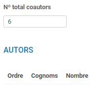 Aquest camp, però, s’ha d’actualitzar manualment, sobretot en els casos en que l’article té més de nou coautors, donat que a partir del dècim coautor, el CVA mostra “et alt.” a la referència bibliogràfica.